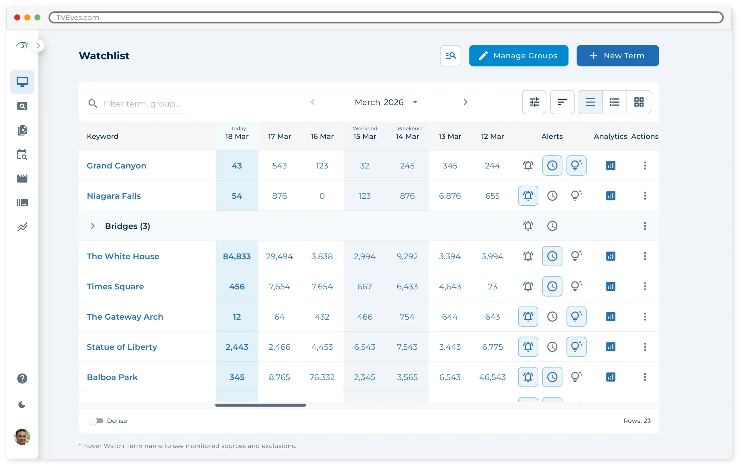 TVEyes provides unmatched visibility into spoken-word media covering a vast array of broadcasts. And the platform boasts an intuitive interface ensuring ease of use and seamless mobile experience.